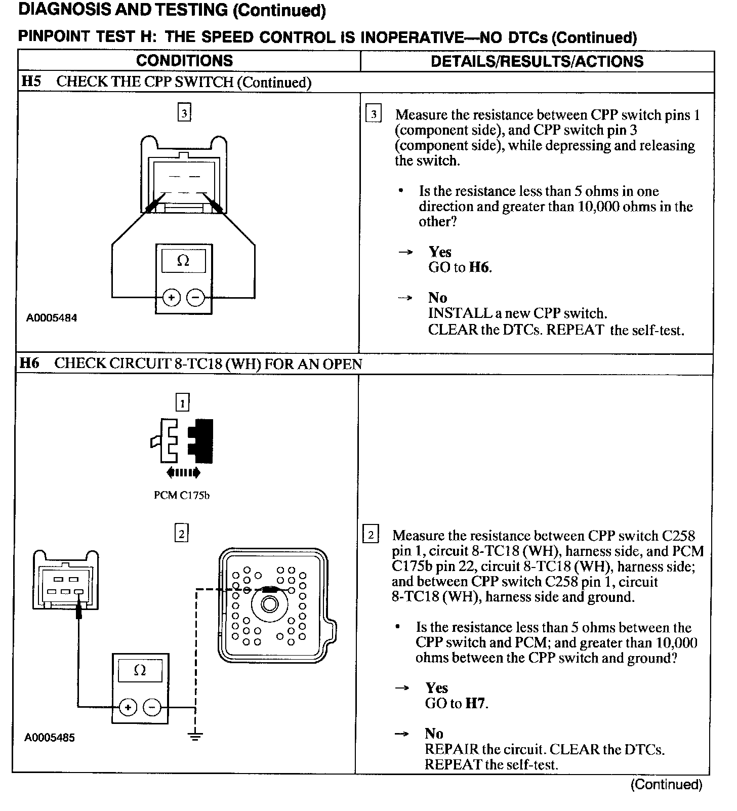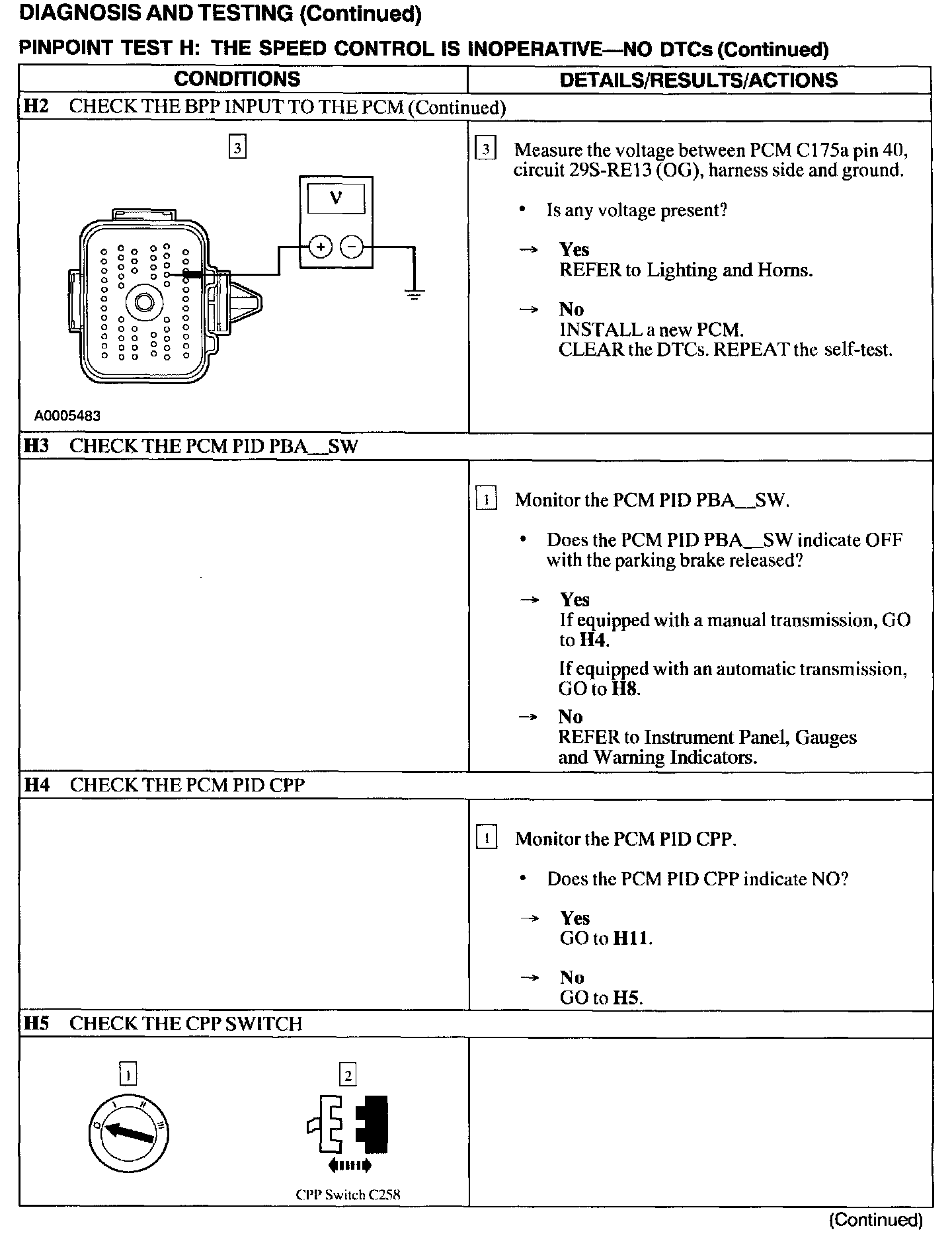 Test H: Speed Control Is Inoperative - No DTCs