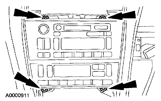 4. Remove the screws and pull the Dual Automatic Temperature Control (DATC) and radio assembly away from the instrument panel.