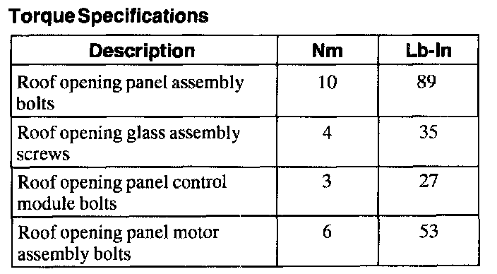 Torque Specifications: