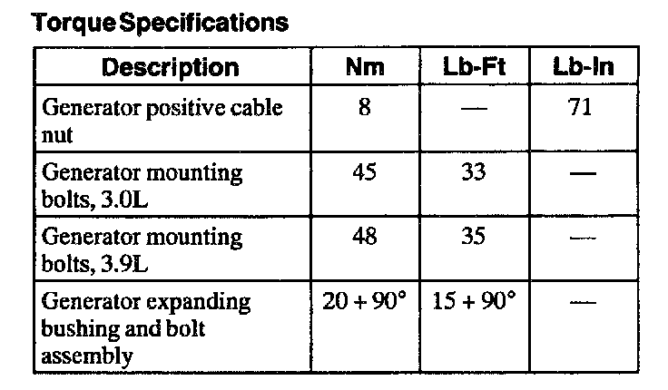 Torque Specifications: