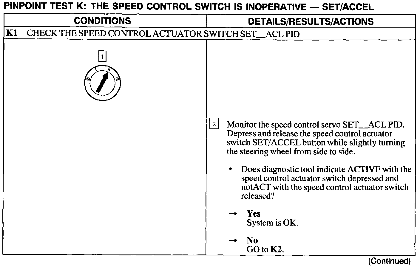 Test K: Speed Control Switch Is Inoperative - Set/Accel