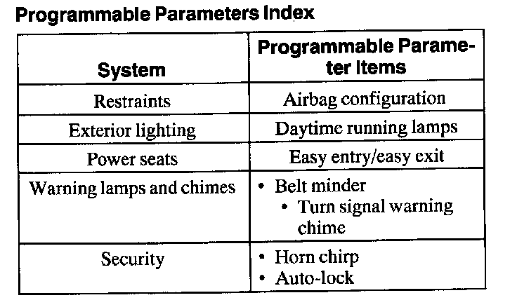Programmable Parameters Index:
