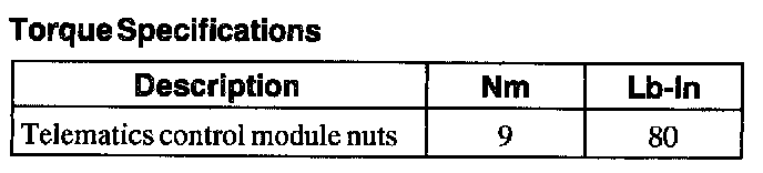 Torque Specifications: