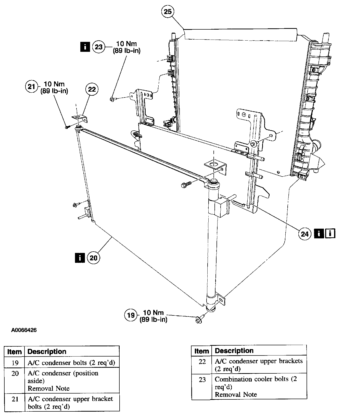 Item 20: A/C Condenser Removal Note
