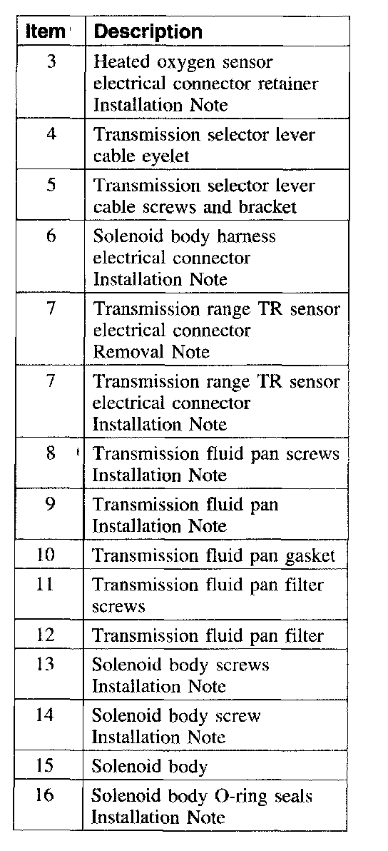 Item 8: Transmission Fluid Pan Screws Installation Note