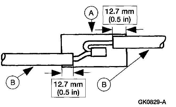 5. Position the (A) heat shrink tube over the (B) wire repair.