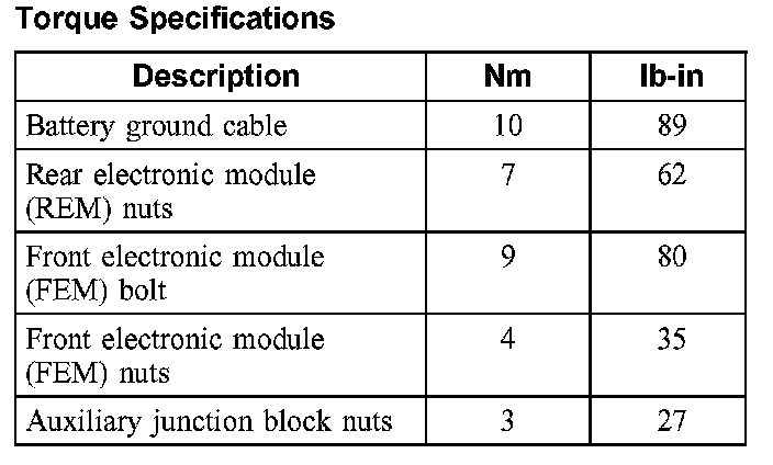 Torque Specifications: