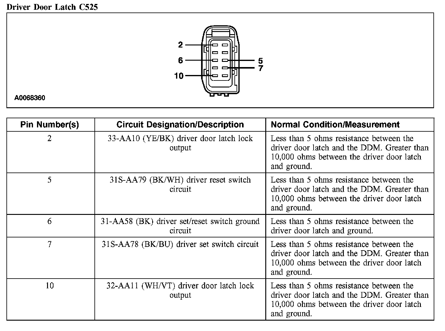 Driver Door Latch C525: