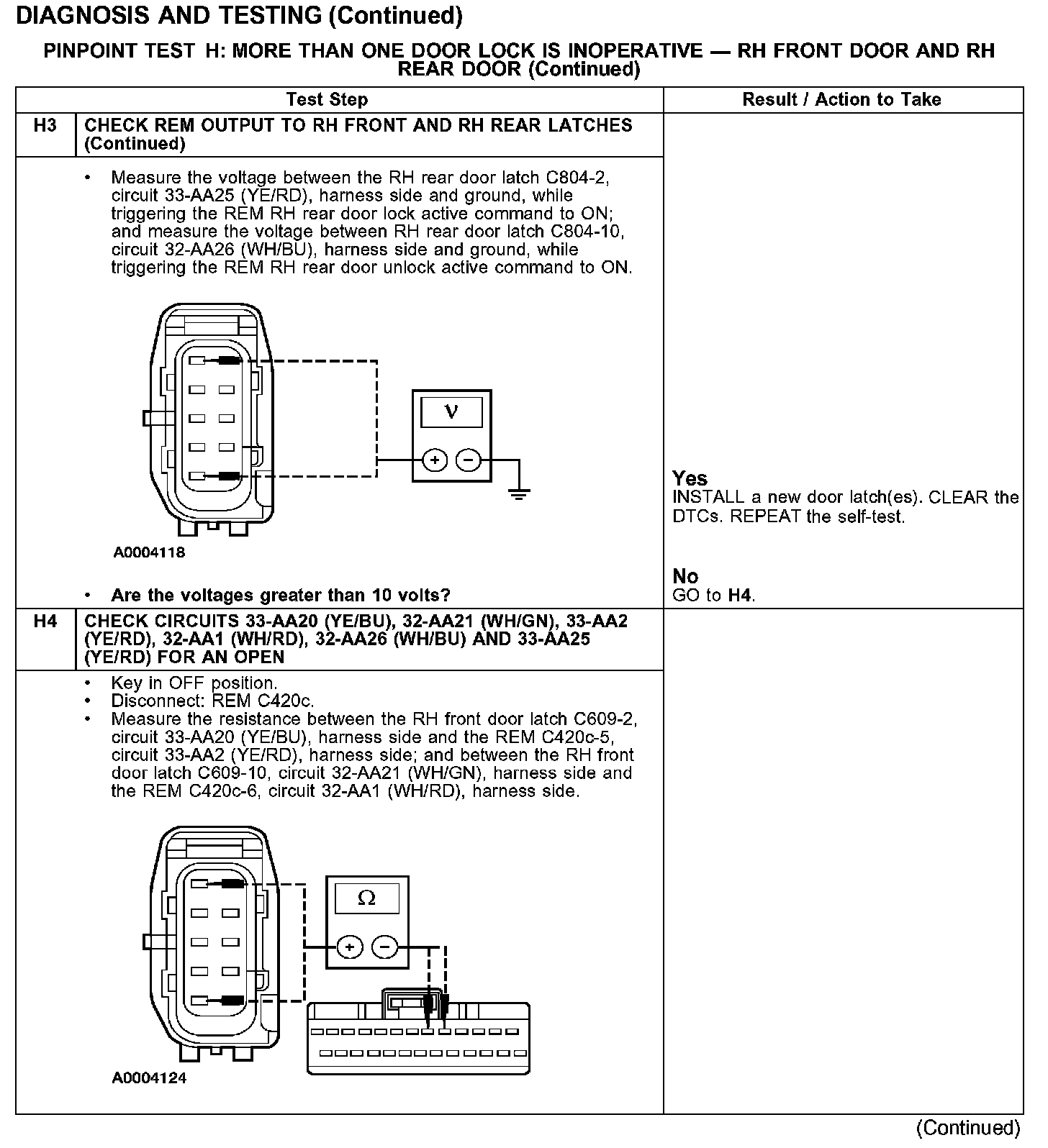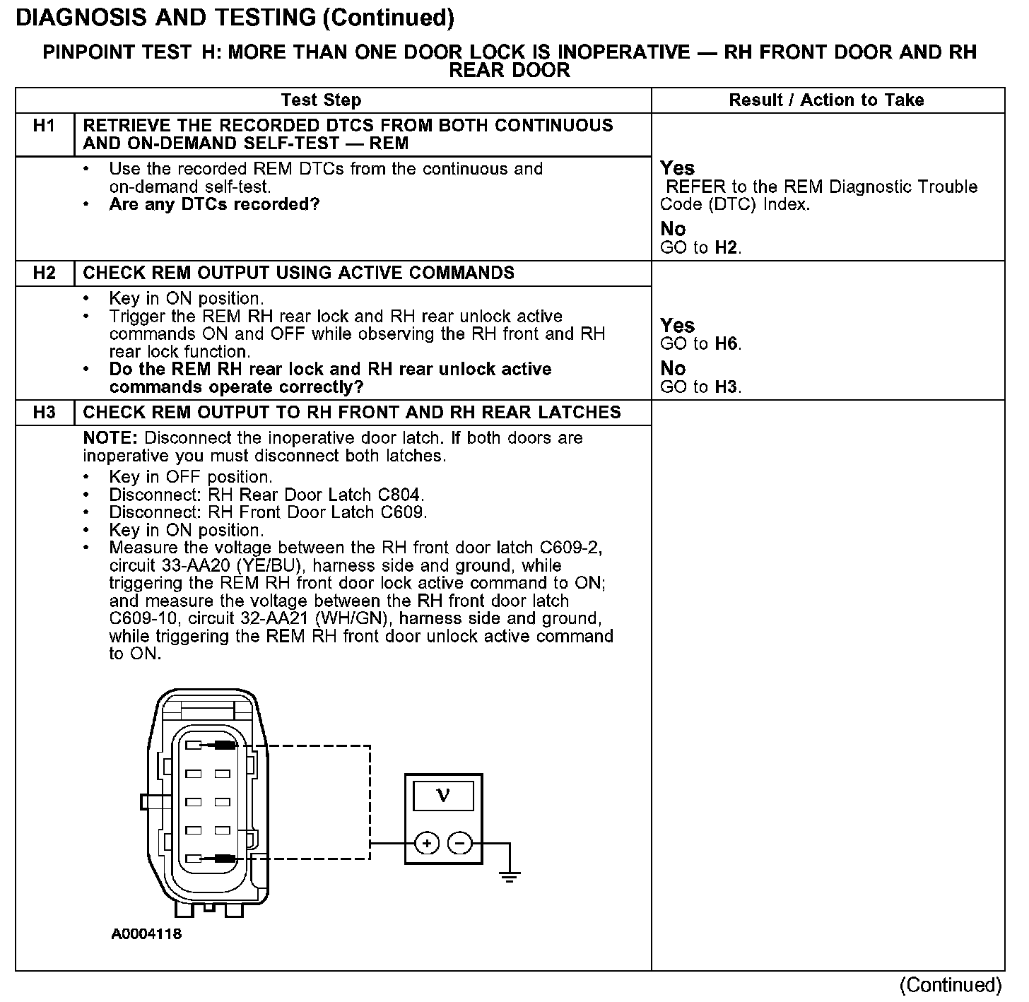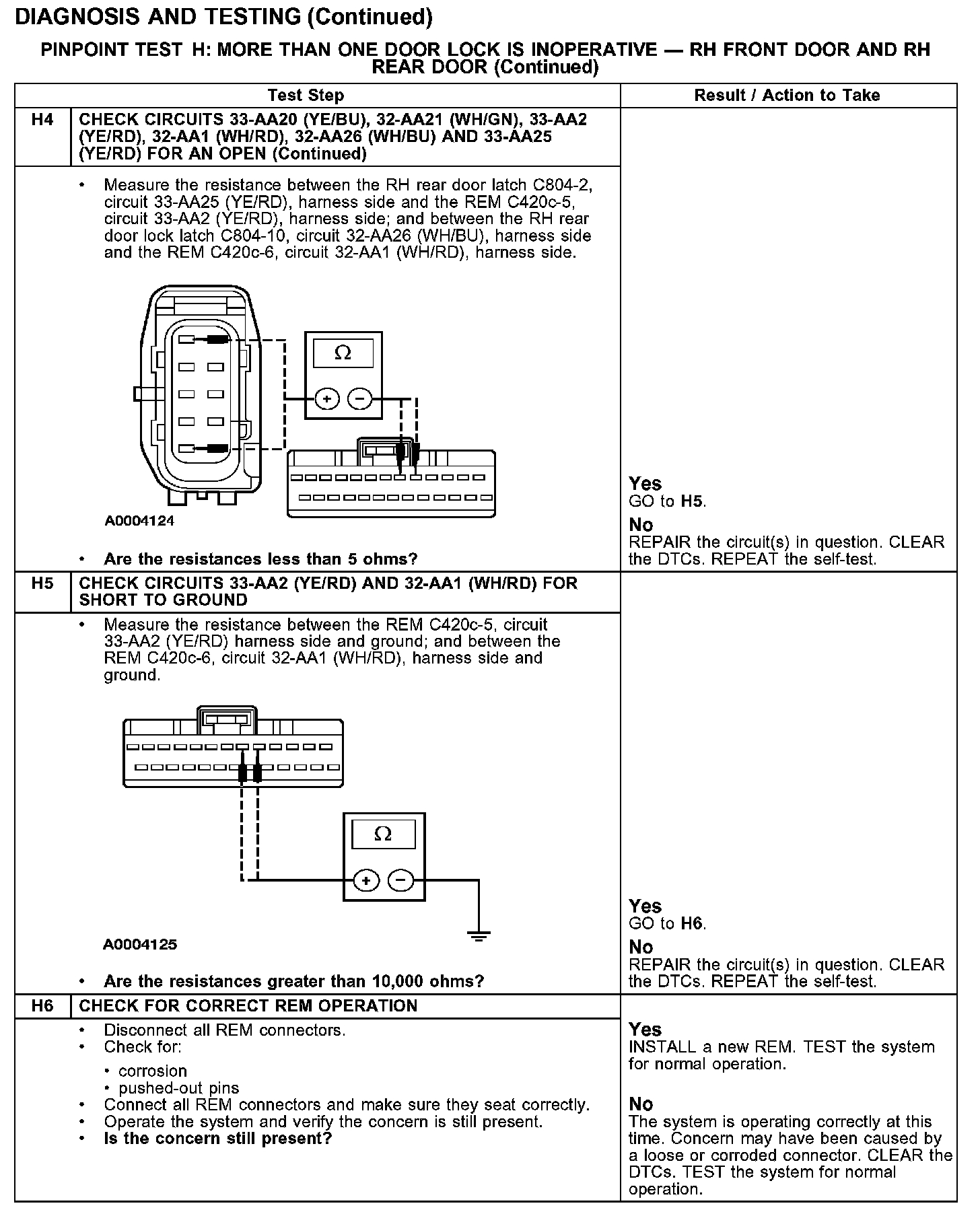 PINPOINT TEST H: MORE THAN ONE DOOR LOCK IS INOPERATIVE - RH FRONT DOOR AND RH REAR DOORTest H1-H3:
