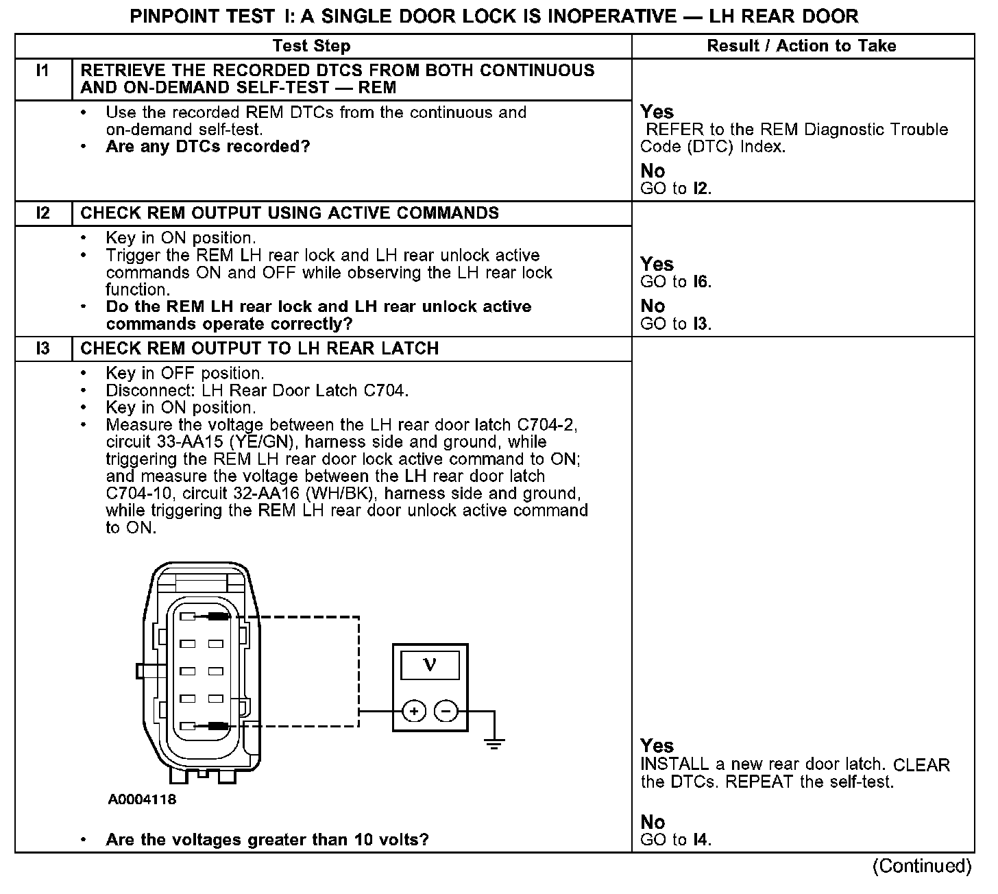 PINPOINT TEST I: A SINGLE DOOR LOCK IS INOPERATIVE - LH REAR DOORTest I1-I3: