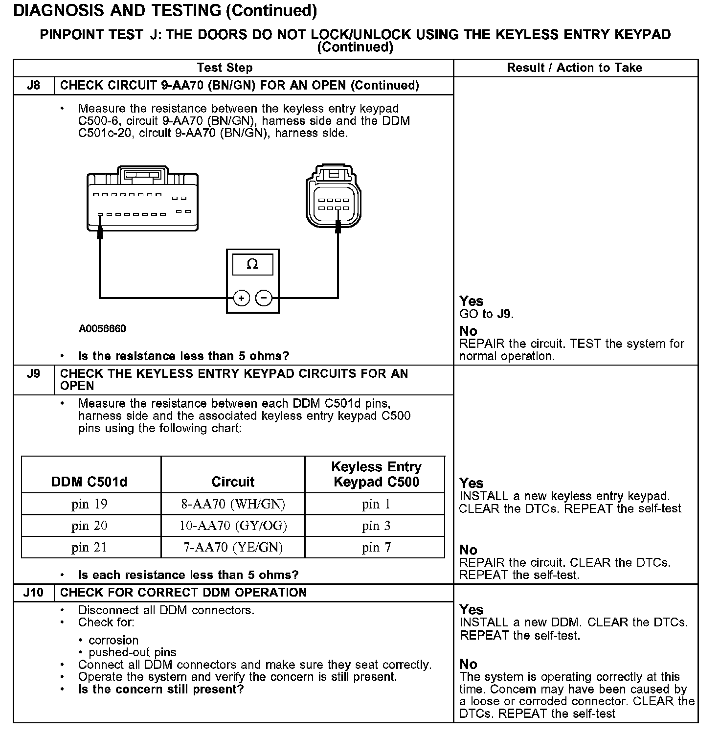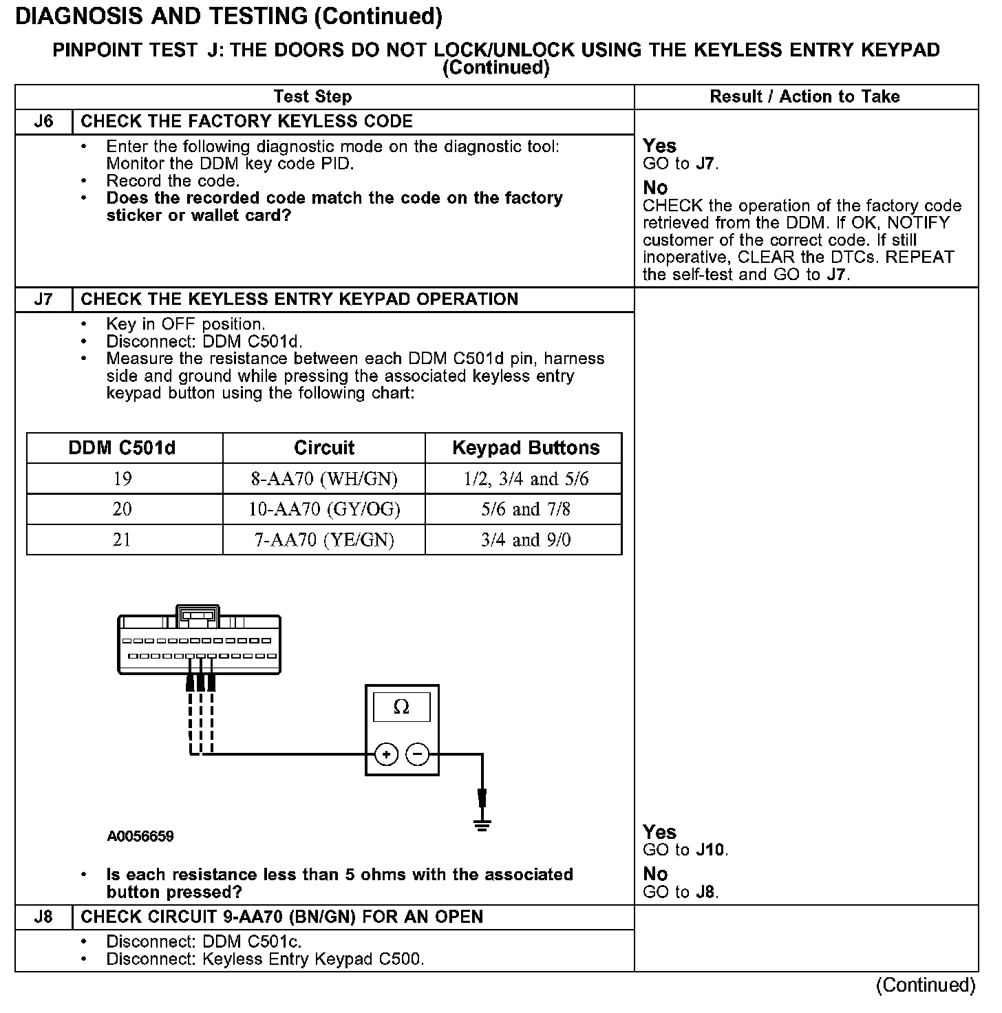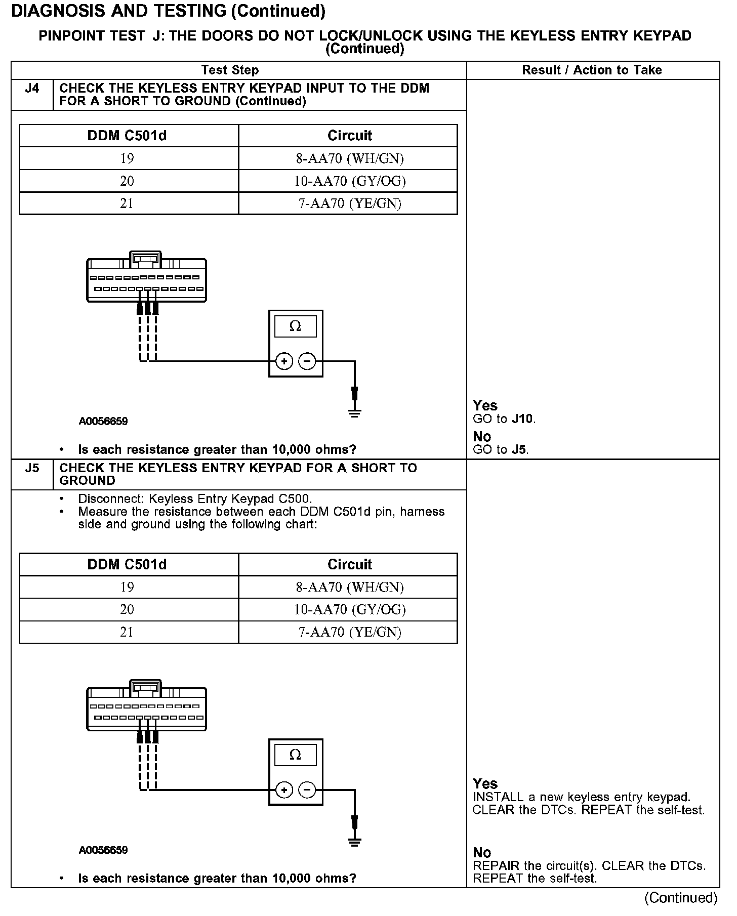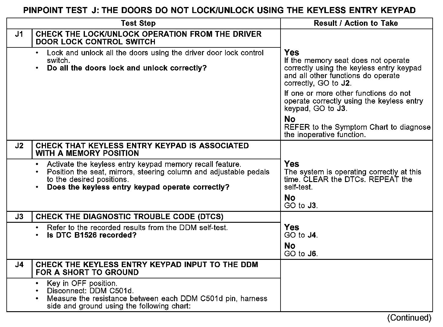 PINPOINT TEST J: THE DOORS DO NOT LOCK/UNLOCK USING THE KEYLESS ENTRY KEYPADTest J1-J4: