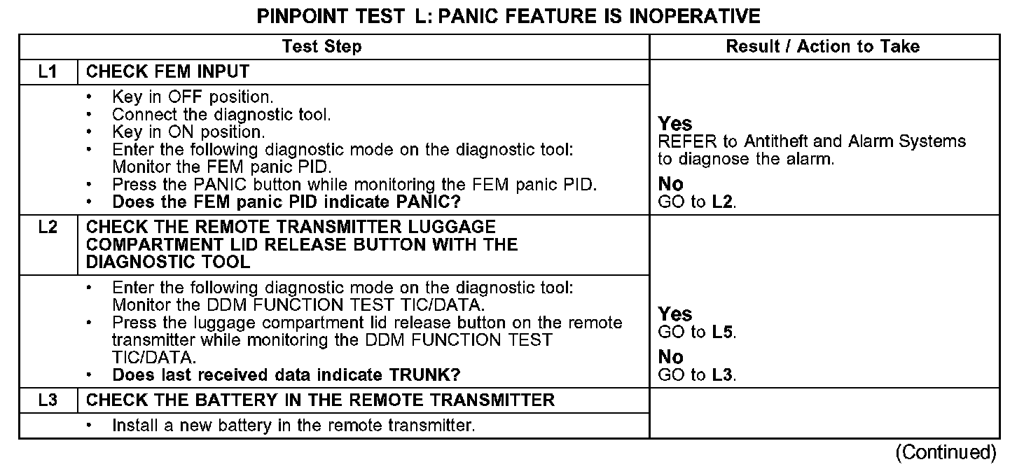 PINPOINT TEST L: PANIC FEATURE IS INOPERATIVETest L1-L3:
