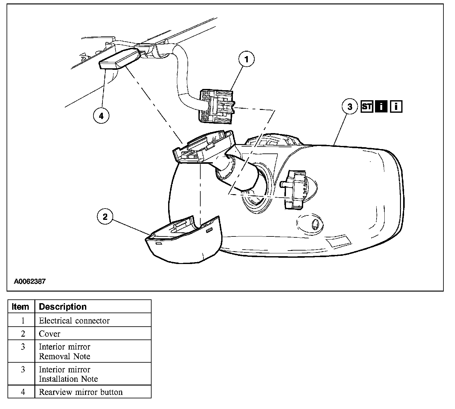 1. Place the interior mirror in the full DOWN position. Pull downward until released.