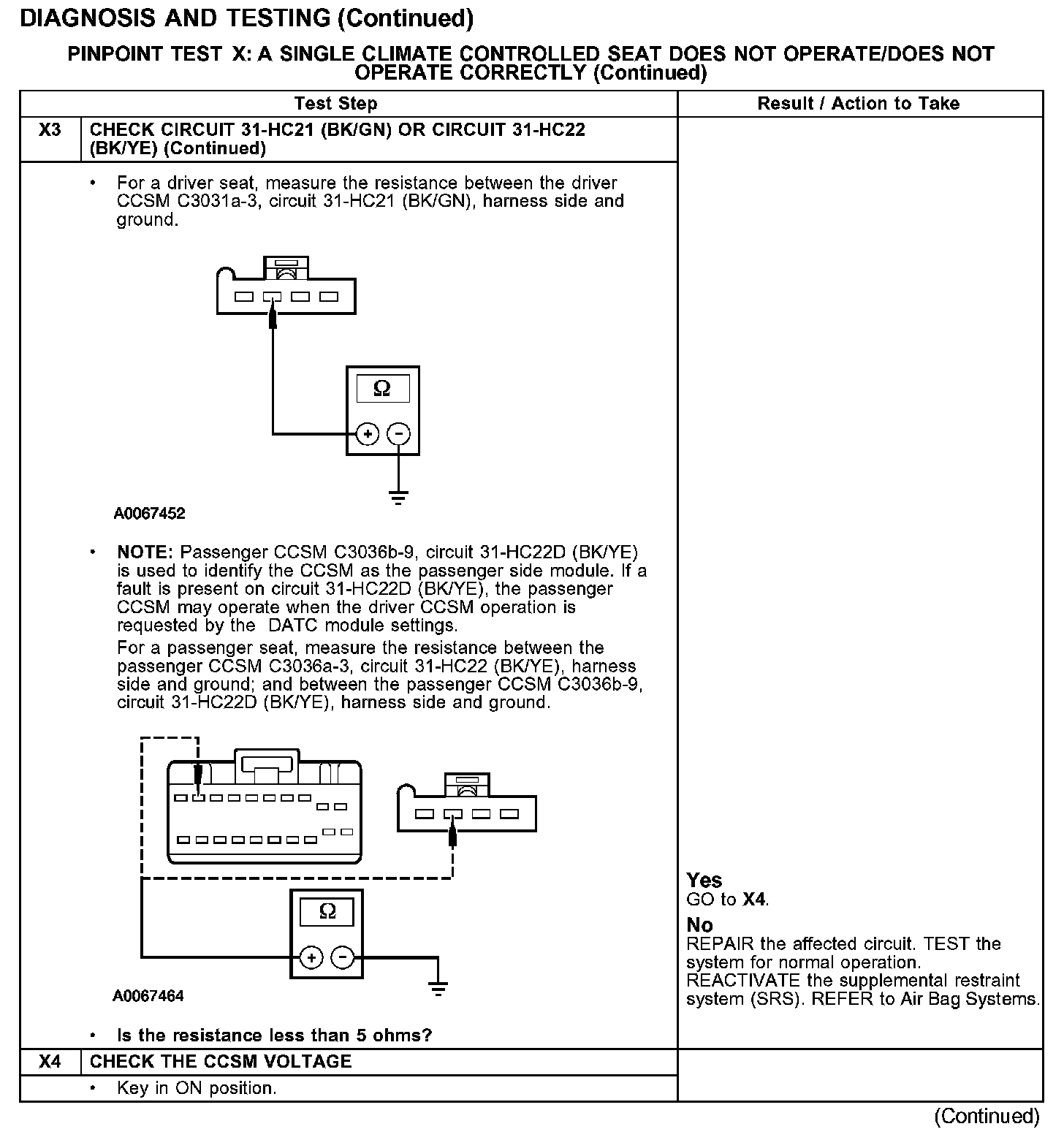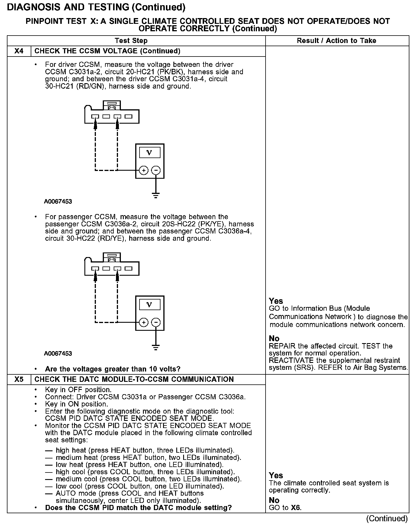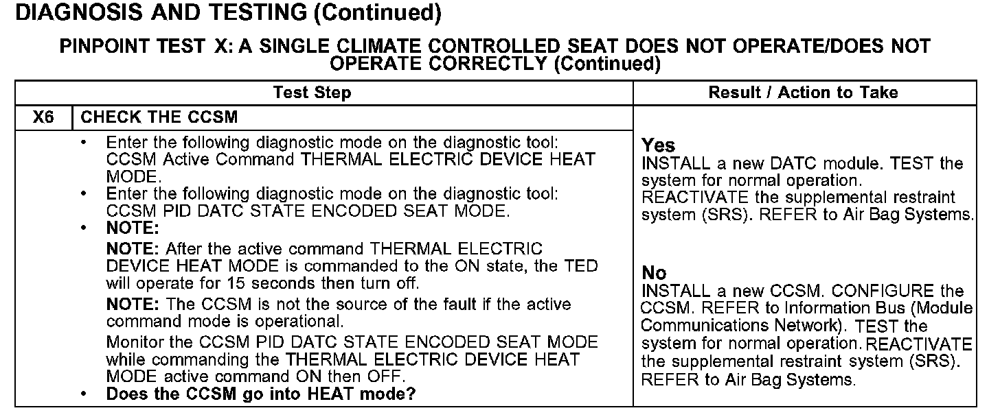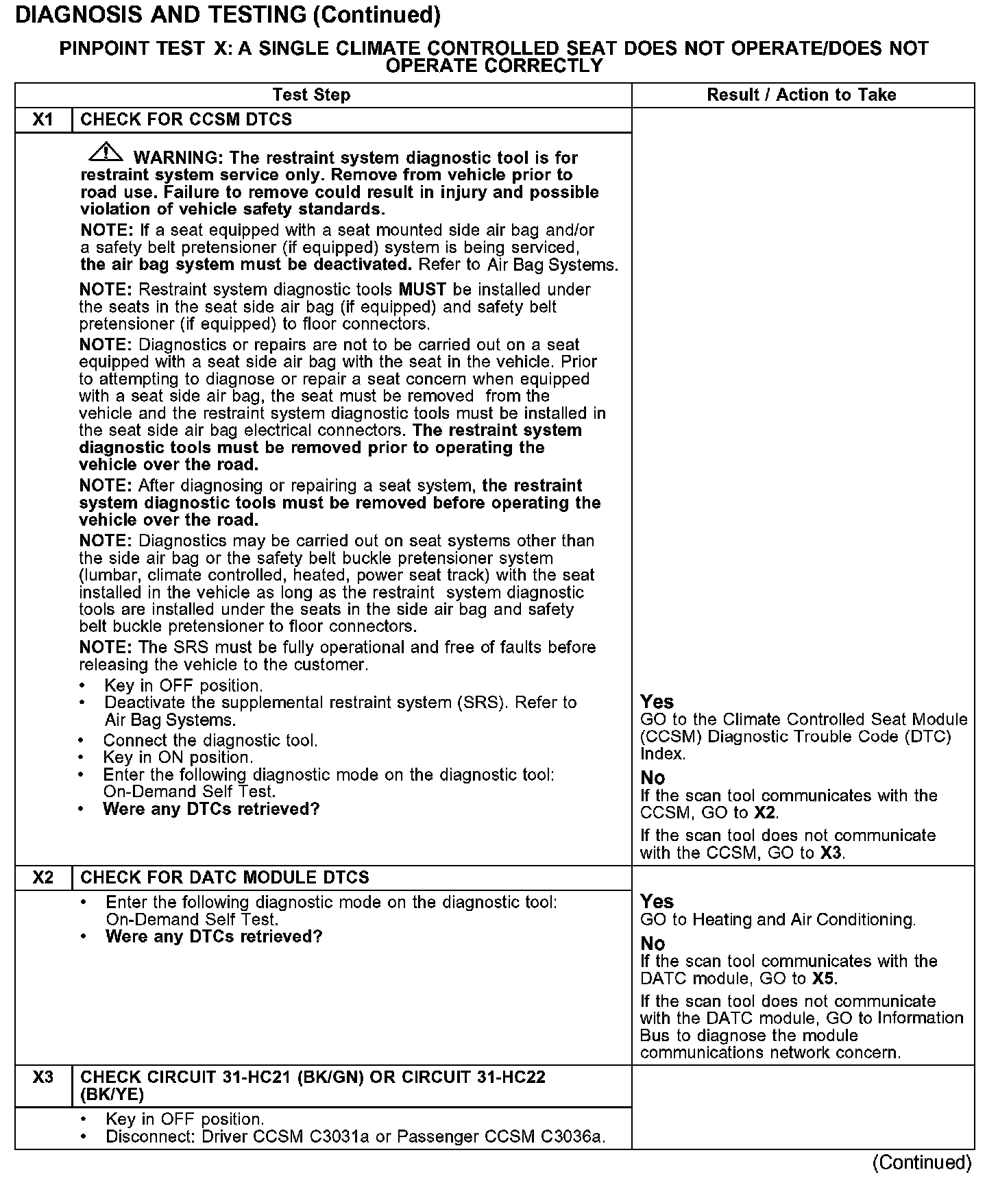 PINPOINT TEST X: A SINGLE CLIMATE CONTROLLED SEAT DOES NOT OPERATE/DOES NOT OPERATE CORRECTLYTest X1-X3: