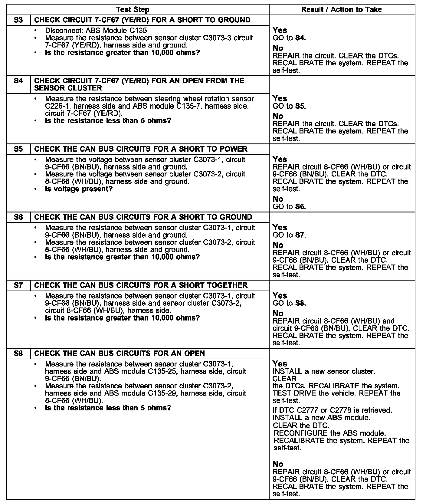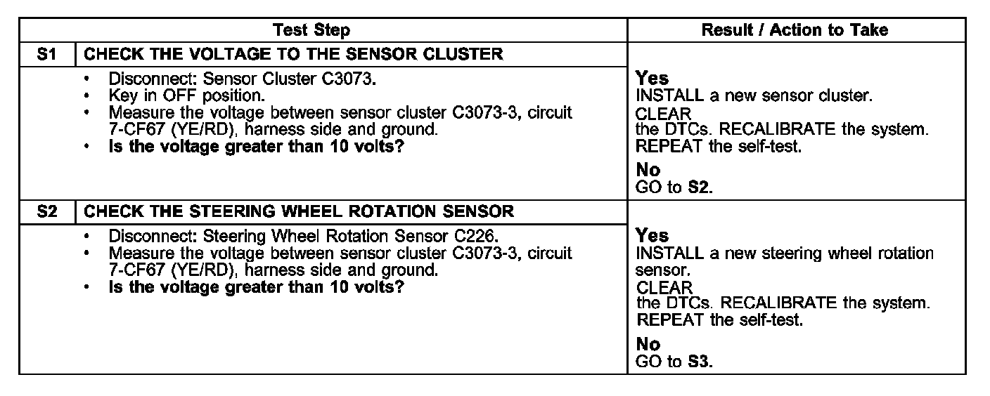 PINPOINT TEST S: DTC C2777 AND DTC C2778-SENSOR CLUSTER BUS FAILURETests S1 - S2:
