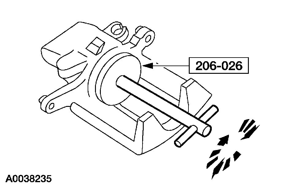 1. Using the special tool, compress the brake caliper piston and adjuster into the disc brake caliper. Align the piston notch in the up and down position.
