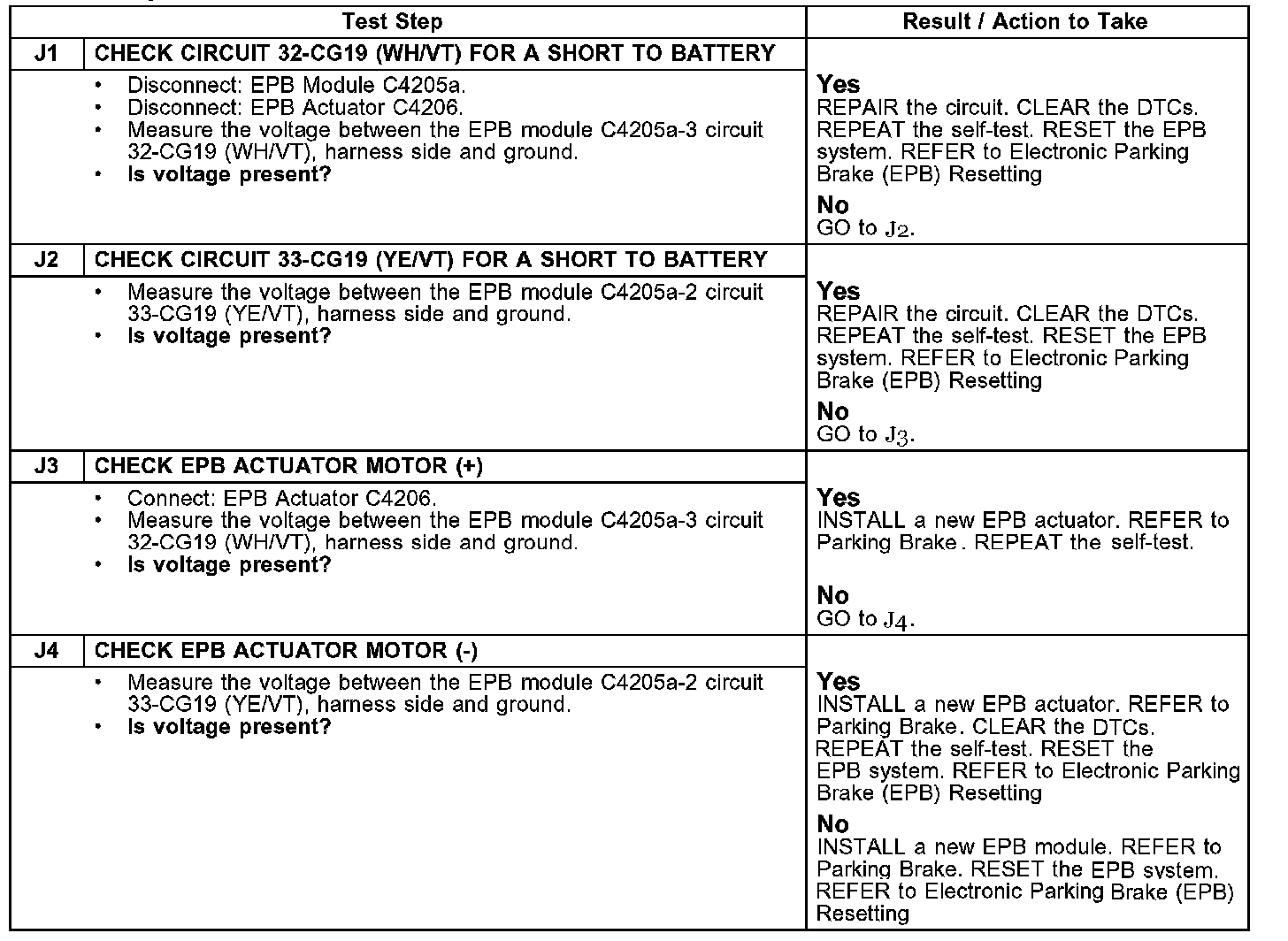 PINPOINT TEST J: DTC C1786: EPB MOTOR OUTPUT CIRCUIT SHORT TO BATTERYTests J1 - J4: