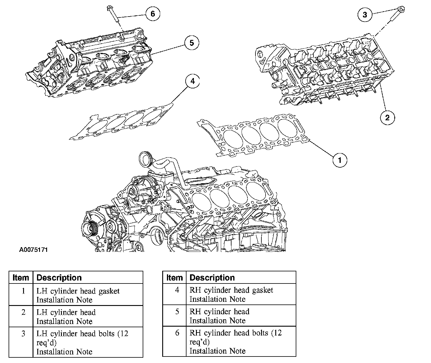 Items 1-6: RH and LH Cylinder Head Installation Note