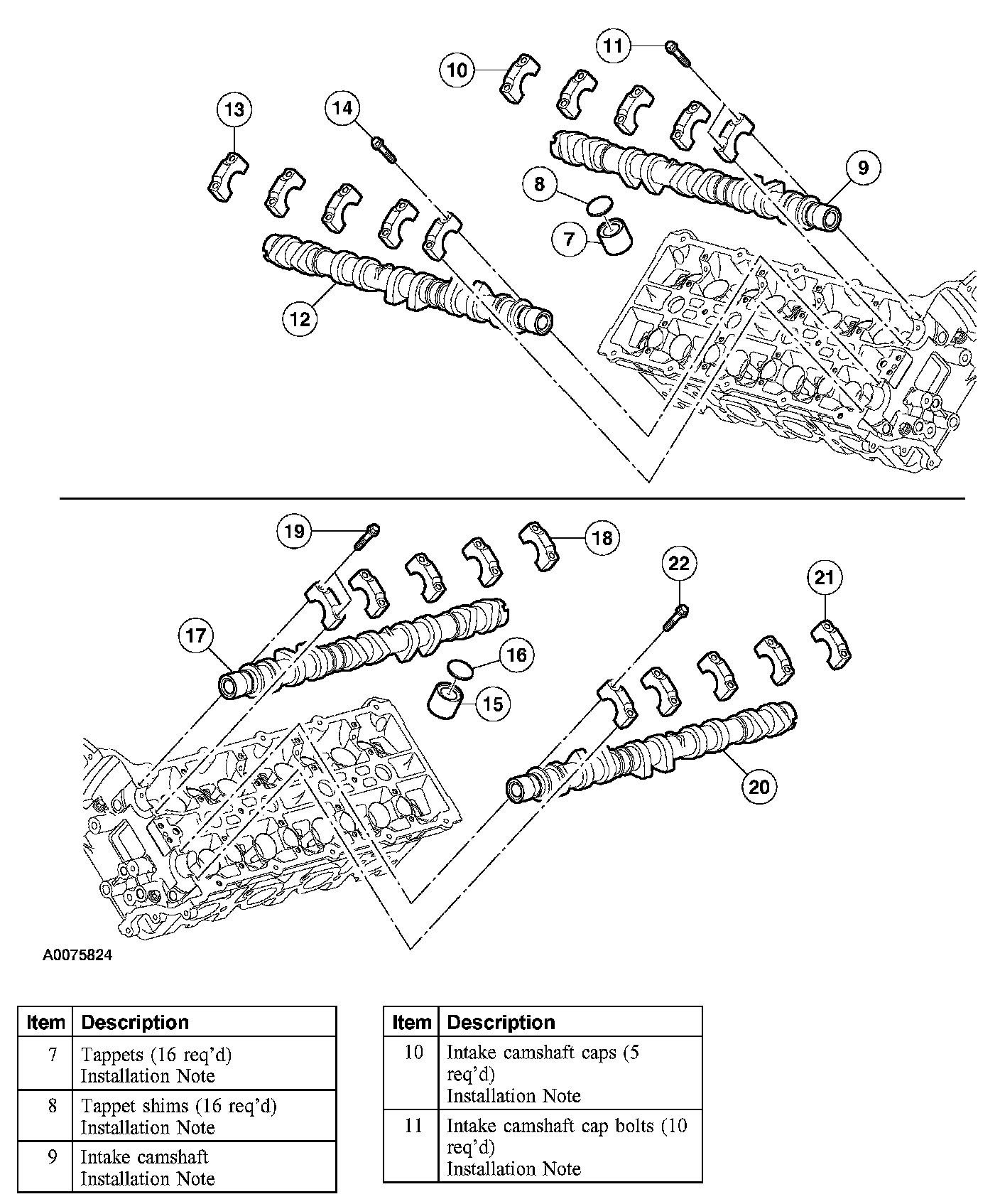 2. CAUTION: Install the camshaft bearing caps. The camshaft bearing caps are positional and must be installed in their original locations and orientation or engine damage can occur.