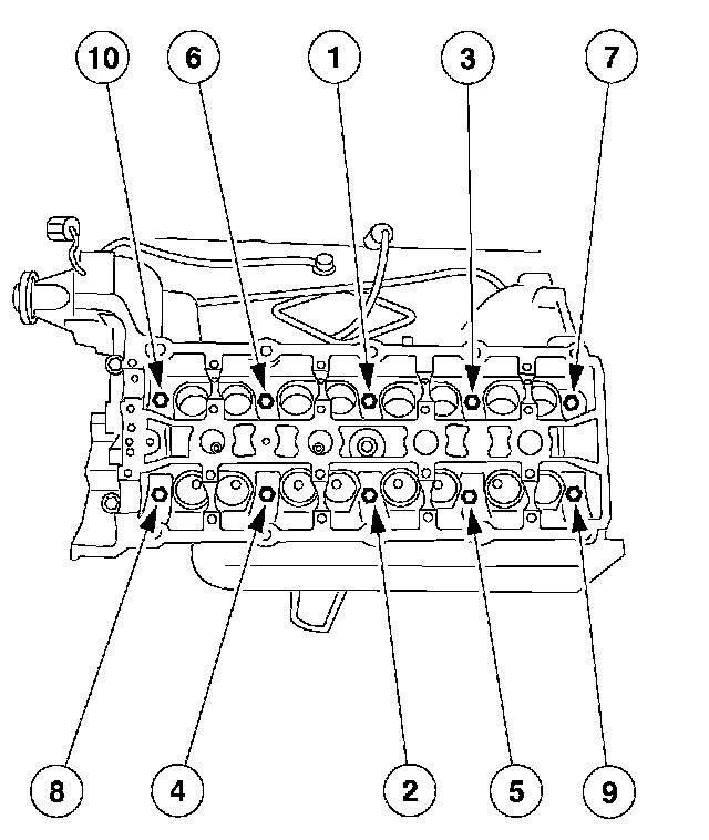 ^ Stage 2: Tighten bolts 1 through 10 to 35 Nm (26 ft. lbs.).