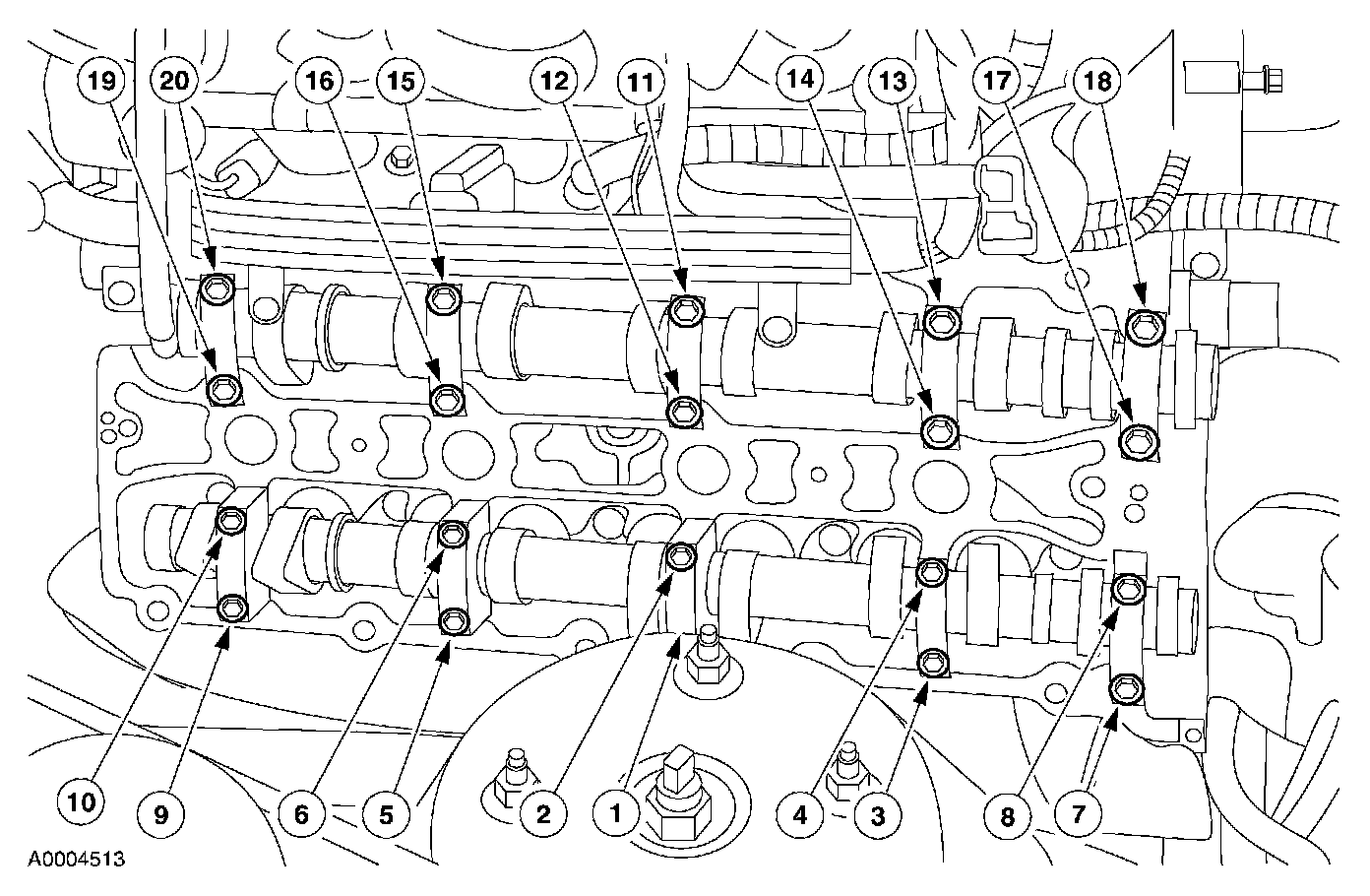 Install and tighten the RH head bolts in four stages in the sequence shown.