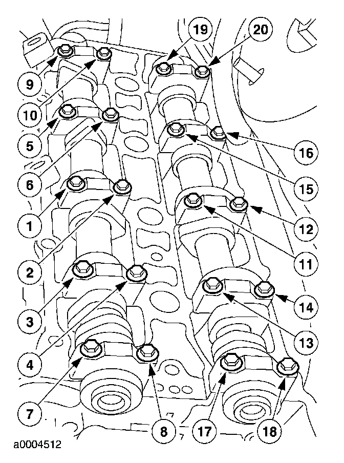 14. CAUTION: The exhaust camshaft sprocket bolt must be fully tightened before tightening the intake camshaft sprocket bolt.