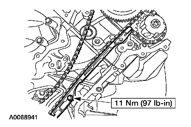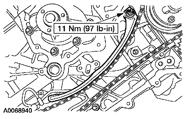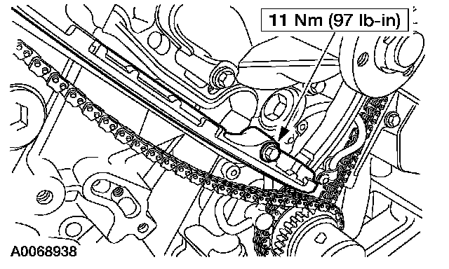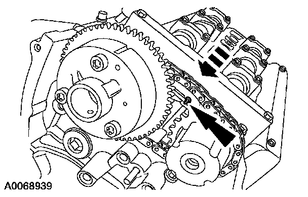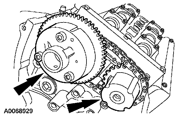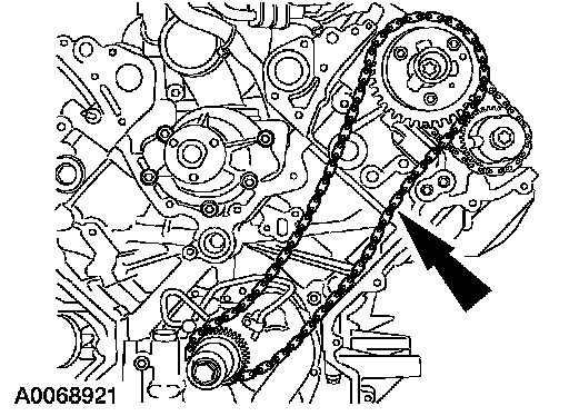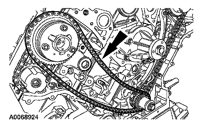 ^ Position the timing chain over the LH intake camshaft sprocket.