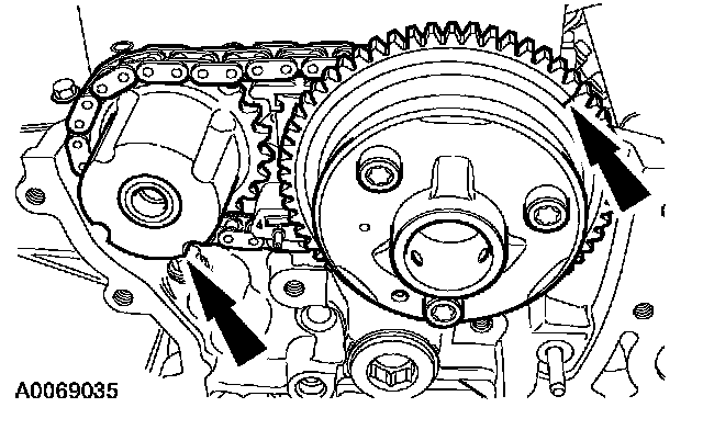 10. Position the RH timing chain over the RH intake camshaft sprocket and over the crankshaft gear.