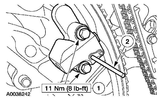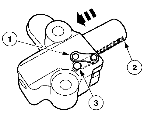3. Remove the locking pin from the LH secondary timing chain tensioner.