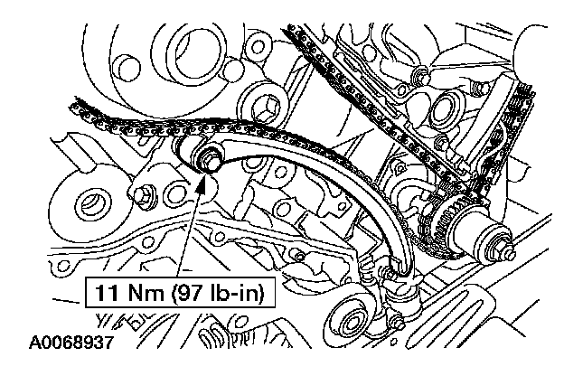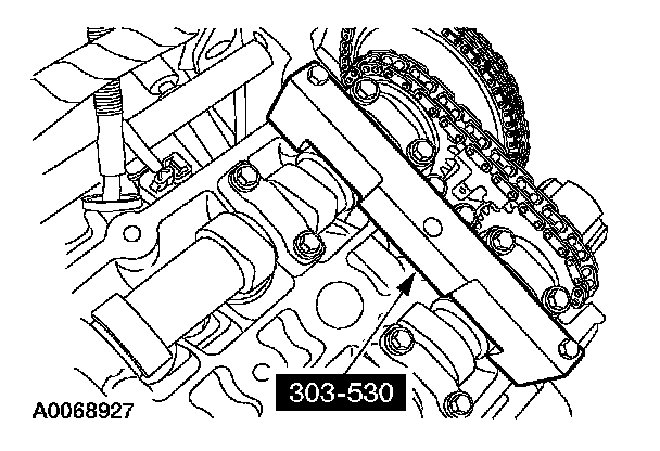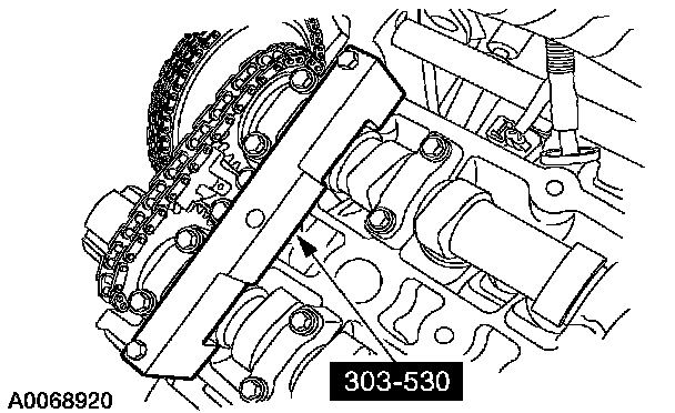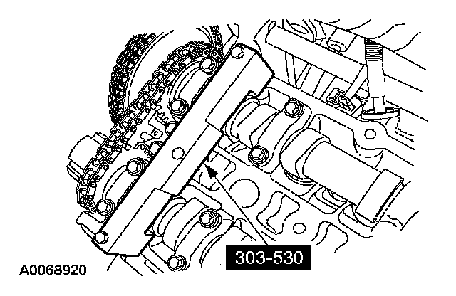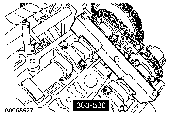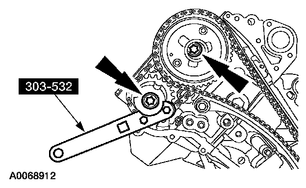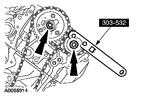 CAUTION: Using the special tool, apply 10 Nm (89 inch lbs.) counterclockwise to the RH exhaust camshaft sprocket.