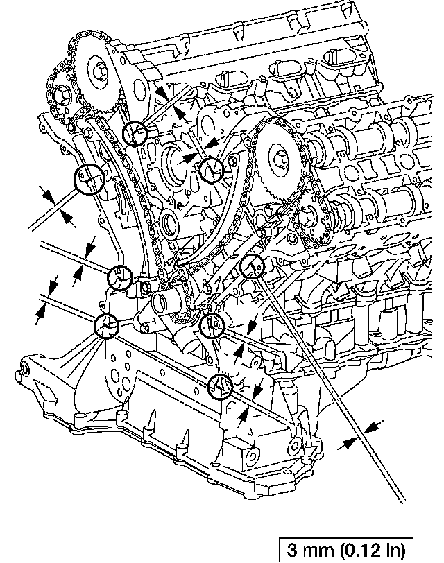 1. NOTE: If the front cover is not secured within four minutes of sealant application the sealant must be removed and the sealing area cleaned with metal surface cleaner. Allow to dry until there is no sign of wetness, or four minutes, whichever is longer. Failure to follow this procedure can cause future oil leakage.
