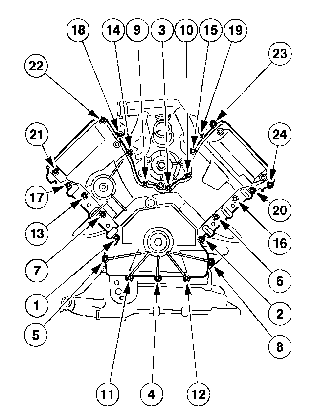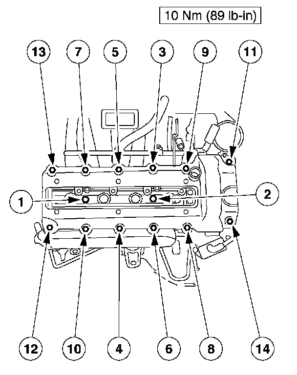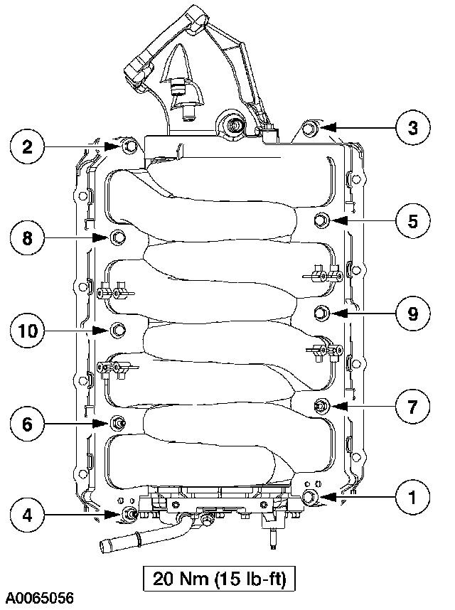 2. Install the intake manifold and tighten the bolts in the sequence shown.