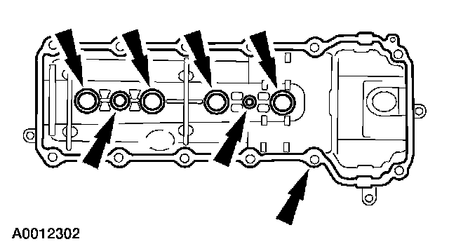 1. NOTE: Remove all dirt and moisture from the valve cover before applying silicone sealer.