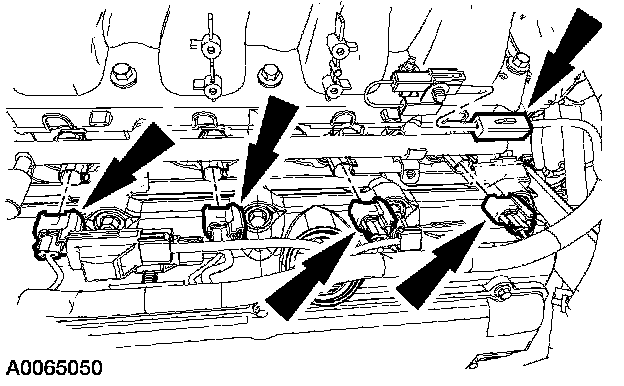 1. Install the engine wiring harness retainers onto the engine cover support bracket.