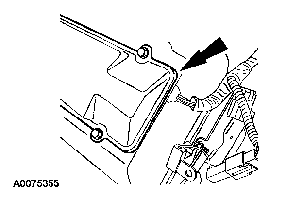 Lift up the wire harness and apply a 12.7 mm (0.5 inch) bead of silicone sealer in the notch of the valve cover.