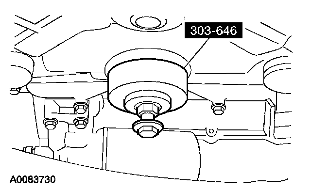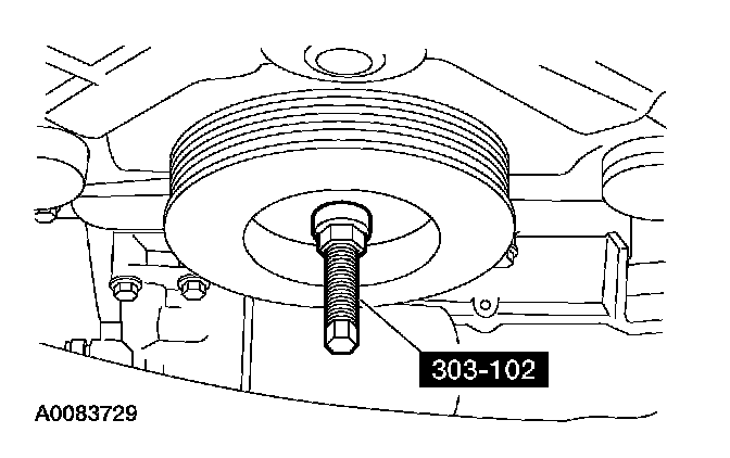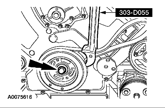 3. NOTE: Use strap wrench (303-D055) while tightening crankshaft pulley bolt.