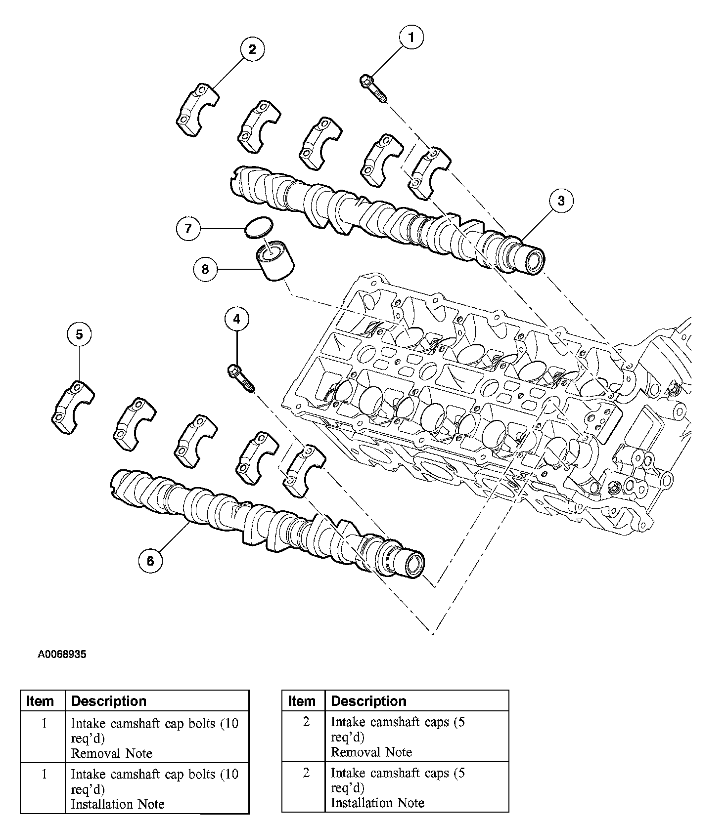 Items 1-7: Camshaft Installation Note