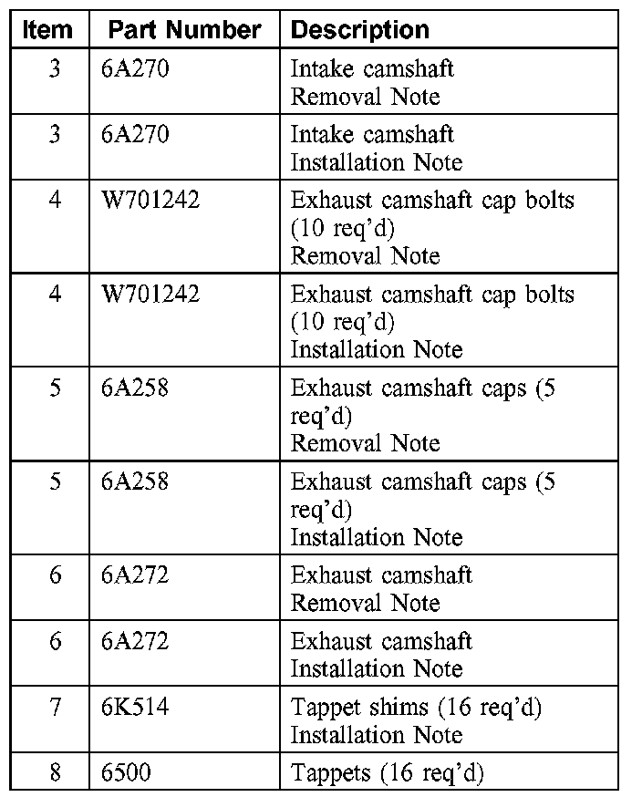 Items 1-6: Camshaft Removal Note