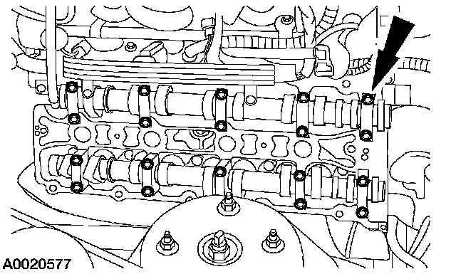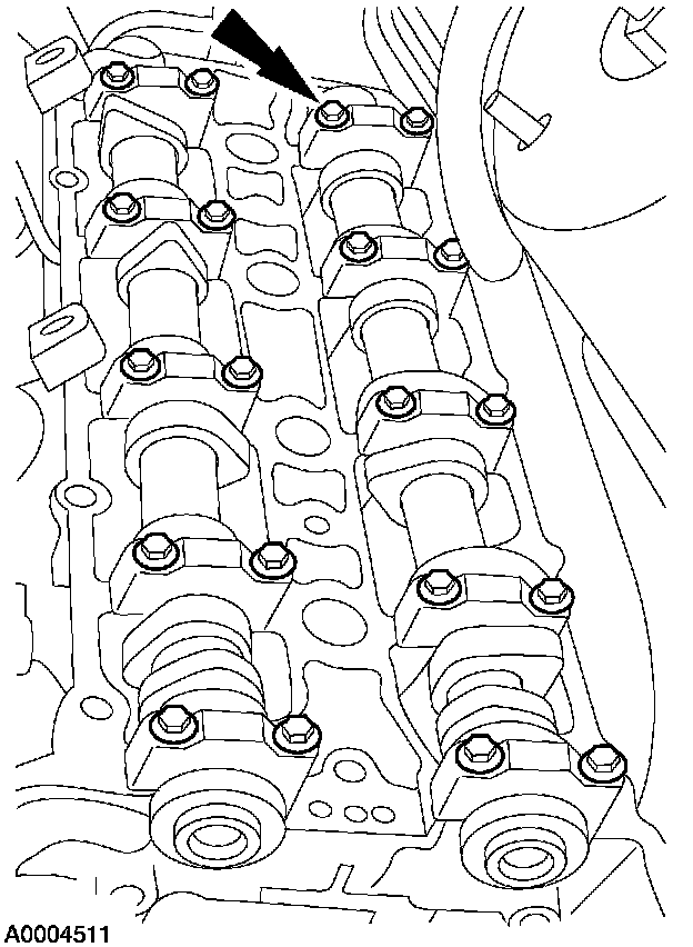 ^ Remove the LH camshaft bearing caps.