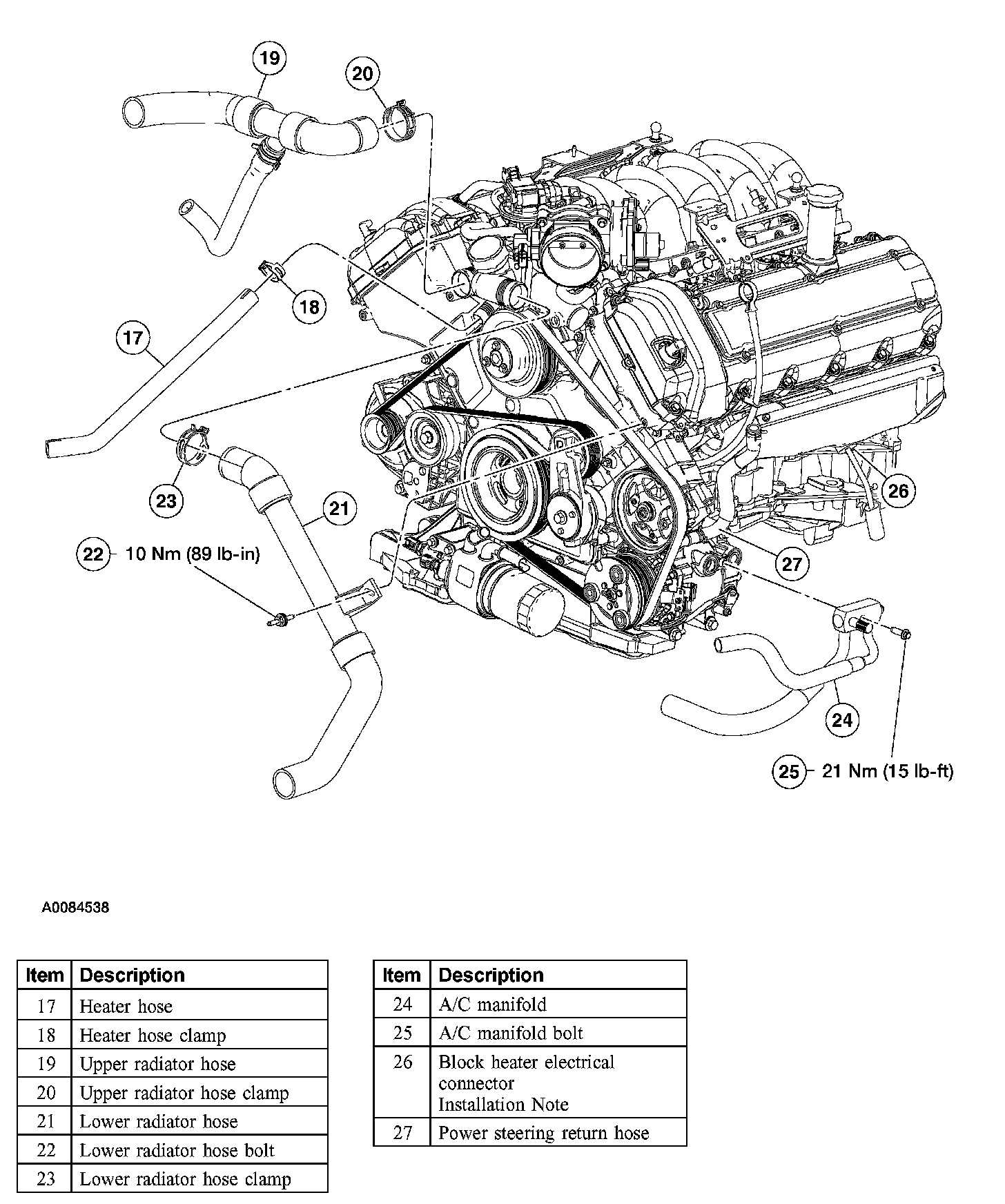 Item 84: Heater Hoses Installation Note