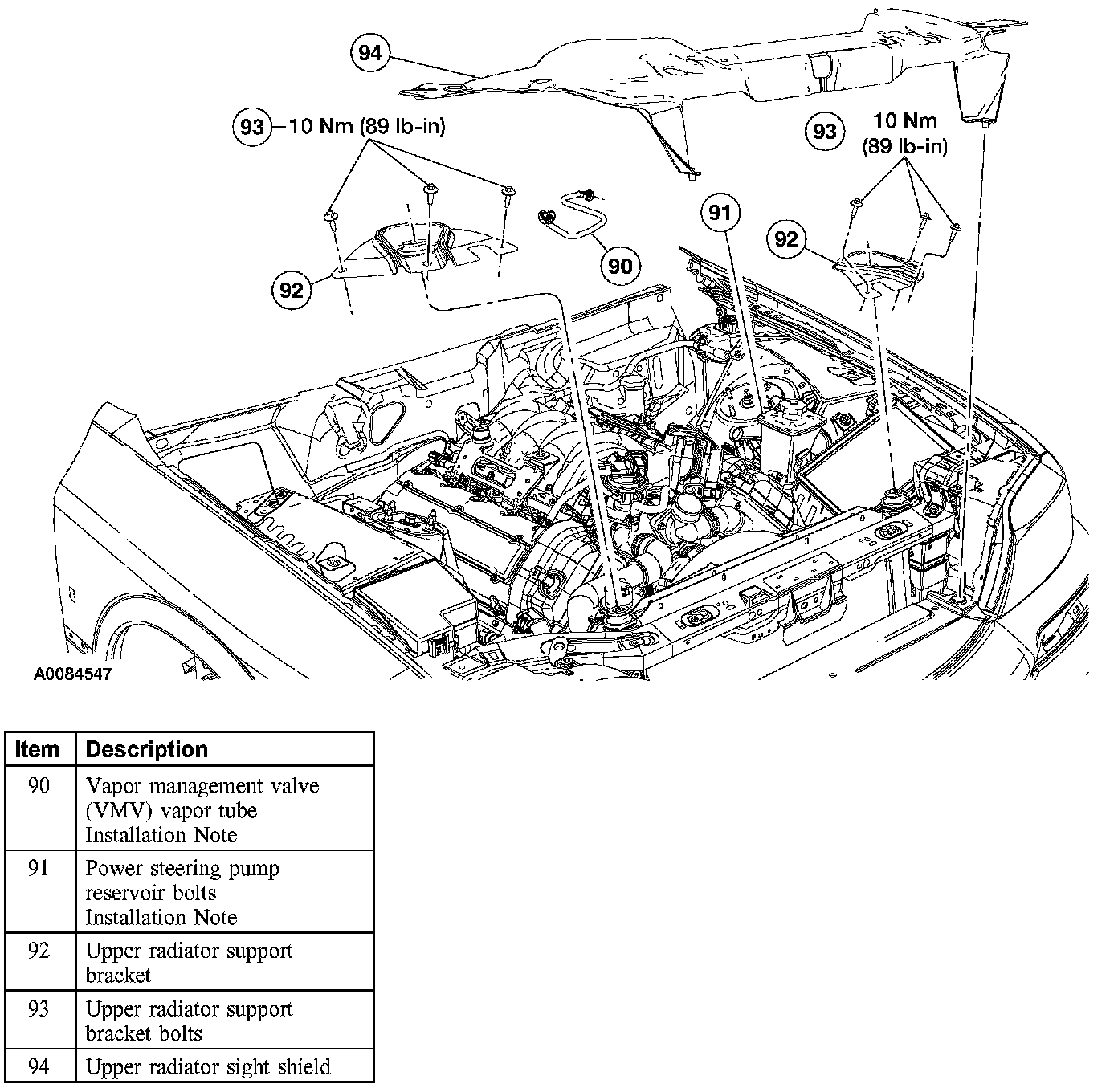 Item 91: Power Steering Pump Reservoir Bolts Installation Note