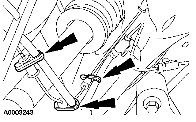 1. Position the anti-lock brake sensor harness and clip to the brake hose.