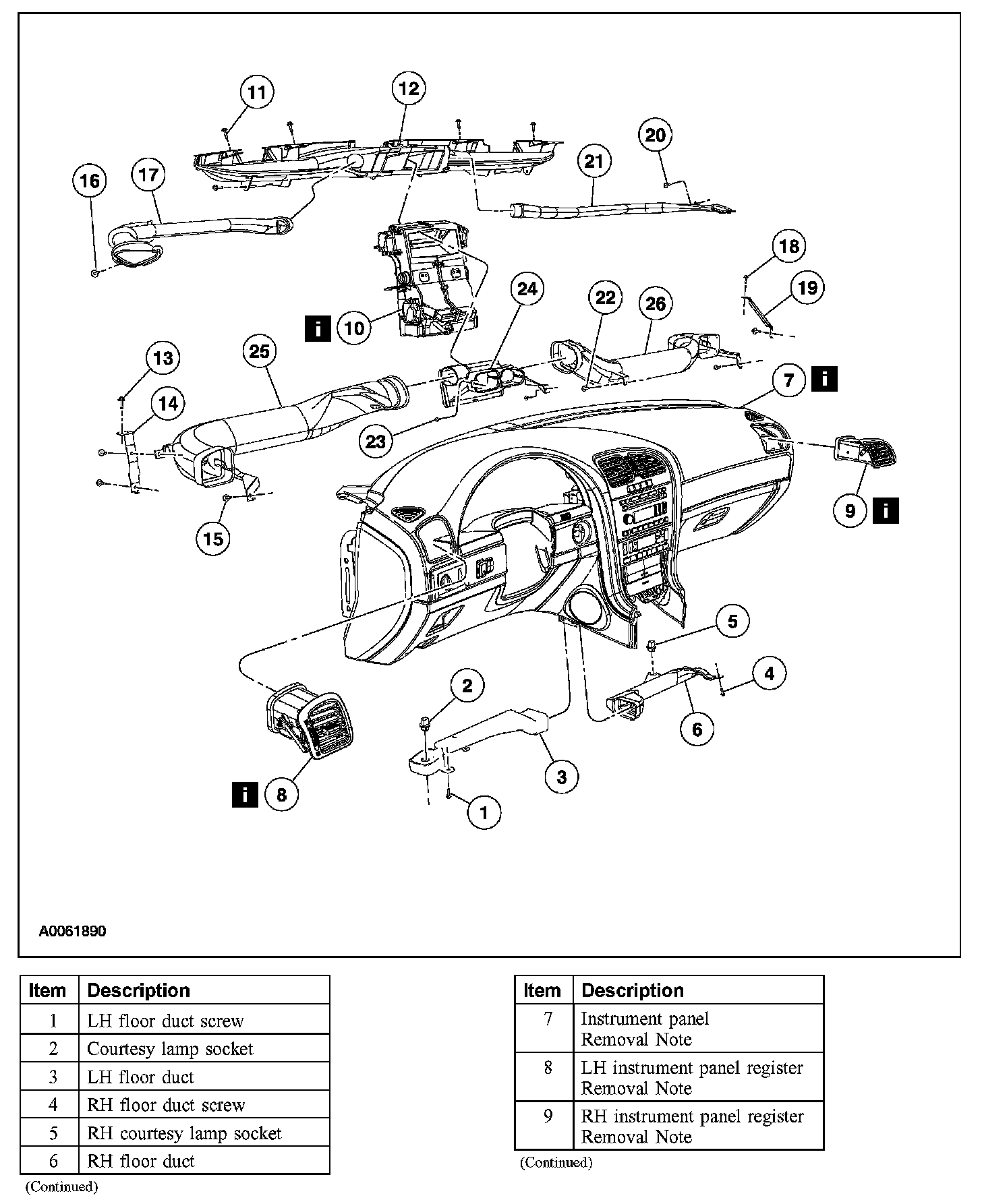 Item 8-9: LH and RH Instrument Panel Register Removal Note