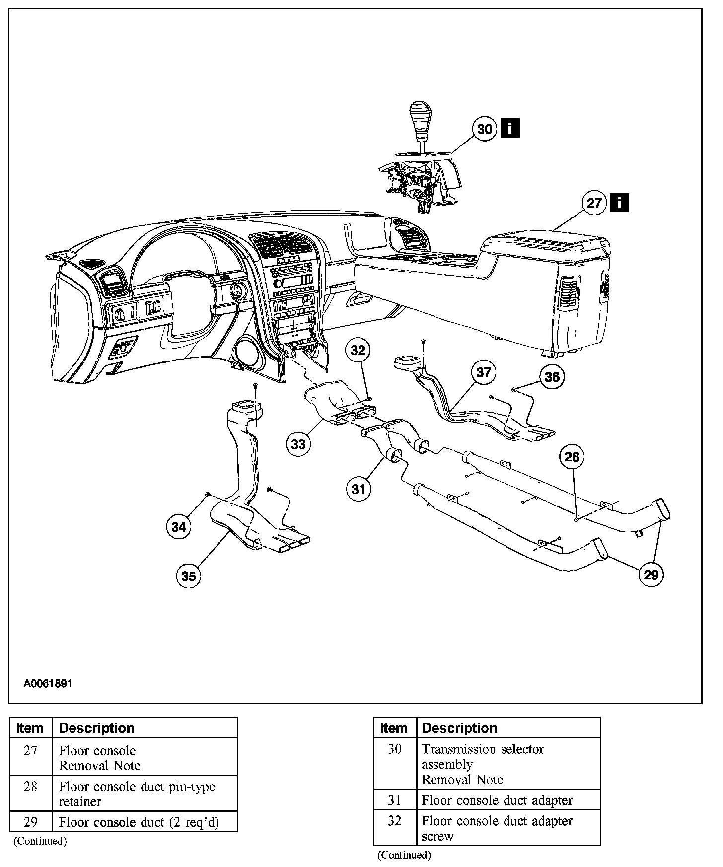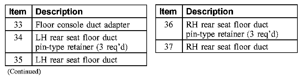 3. If removing the rear seat floor ducts, remove the lower cowl trim panels and front door sill plates to position the carpet away from the ducts.