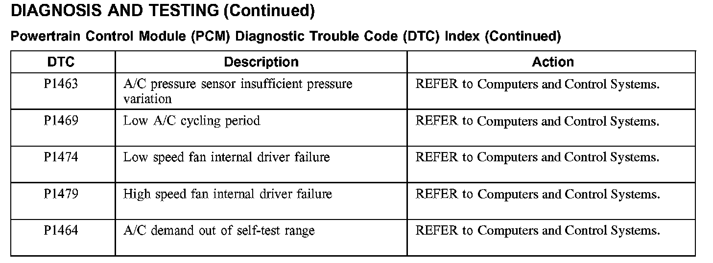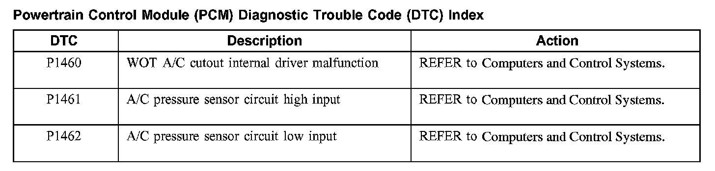 Powertrain Control Module (PCM) Diagnostic Trouble Code (DTC) Index