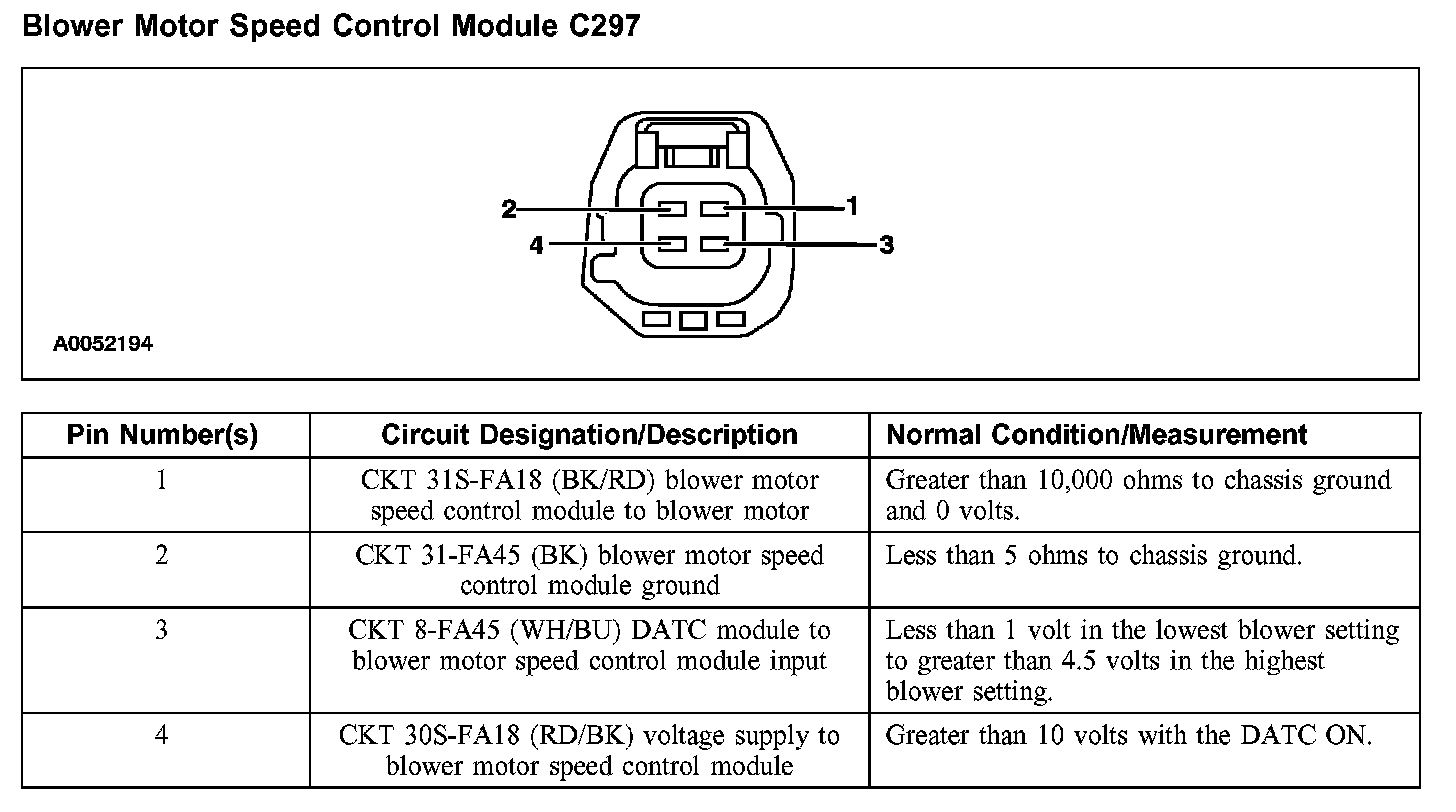 Blower Motor Speed Control Module C297: