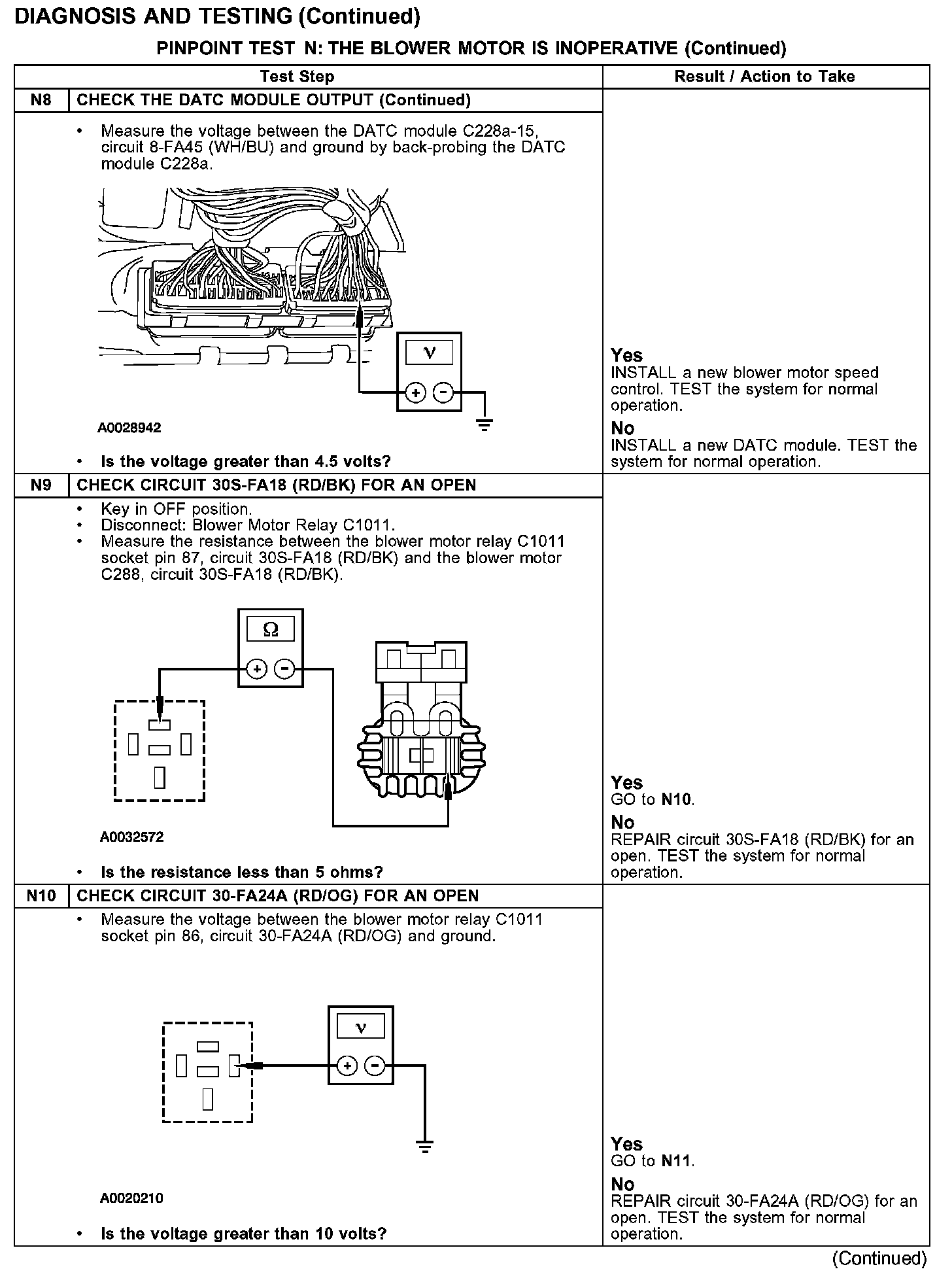 PINPOINT TEST N: THE BLOWER MOTOR IS INOPERATIVETest N1-N3: