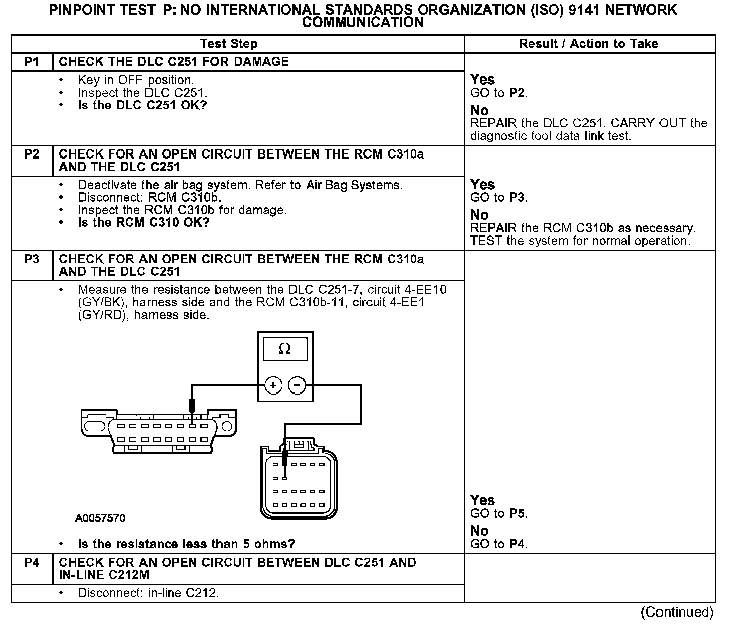 PINPOINT TEST P: NO INTERNATIONAL STANDARDS ORGANIZATION (ISO) 9141 NETWORK COMMUNICATIONTest P1-P4: