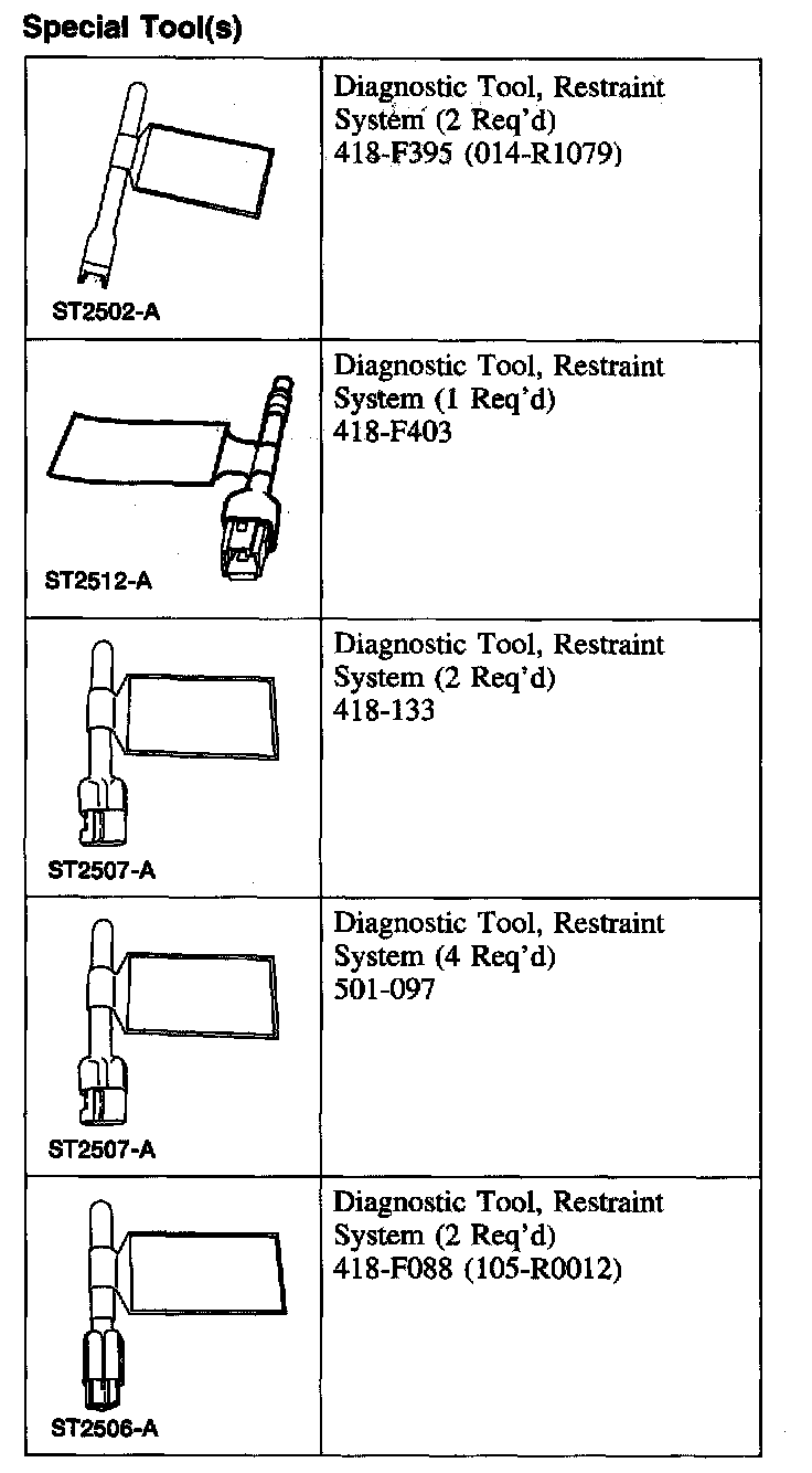 - The restraint system diagnostic tool is for restraint system service only. Remove from vehicle prior to road use. Failure to remove could result in injury and possible violation of vehicle safety standards.