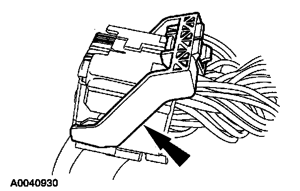 Disconnect the large restraints control module (RCM) electrical connector.